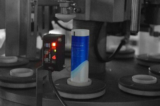 2. Tube feeding, eye marking, tube interior cleaning (optional), material filling, sealing (tail folding), batch number printing, finished products discharging can be performed automatically (the whole procedure).