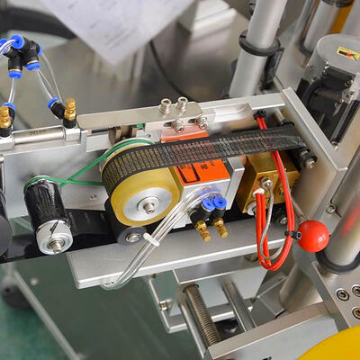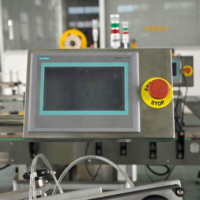 Automatic line for labelling round containers, with PLC touch screen. Can be customized depending on customer's bottles and labels.