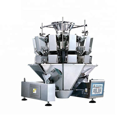Fully automatic multi head weigher packaging machine, It is suitable to use in packing all kinds of grain material, rice, sheet material, strip material and abnormity material which such as candy, melon seeds, chips, peanut, nutlet, preserved fruit, jelly, biscuit, confect, camphorball, currant, almond, chocolate, filbert, corn, Potato Crisps, pet foodstuff, dilatant foodstuff, hardware and plastic can be weighed by the ration.