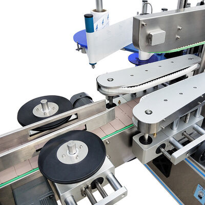 3 the container go through the press plate unit,the press wheel lead the rotation of container,the label is pressed to fit smoothly, the labeling operation is finished.