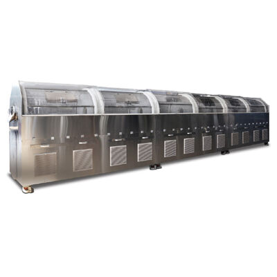 10 The soft capsule cooling system is used for cooling the shell rollers on both sides of capsule, and the rollers’ temperature can be automatically regulated through touch screen within 10°C-20°C to satisfy the demands for the production of different capsule shells and soft capsule products; The soft capsule cooling system consists of outdoor cooling unit and inner condenser of soft capsule machine where the cooling capacity is transferred to liquid refrigerant which will send the cooling capacity of cooling system to the capsule shell rollers of both sides through pump. The sensor in the system is used to automatically control condensation temperature and further regulate the capsule shell rollers’ temperature.