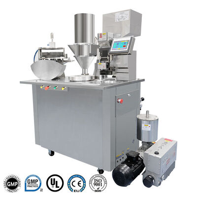 Pharmaceutical grade semi-automatic capsule filling machine for herb powder and hard gelatin capsules, which is suitable for medium and small pharmaceutical factory, hospital preparation lab, etc. The machine is adopted programmable control system, touch panel operation, step-less transudation speed-shift, and electronic automatic counter. It can automatic complete the action of position, separation, filling, locking, etc. The dosage is accurate, and the operation is convenient. The overall machine is made of stainless steel, and it is suitable for the capsule which is filled with power and grain.