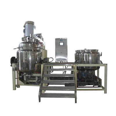 The machine is specially designed adopting advanced technology of oversea according to the cosmetic and ointment production technology. The machine is made up of pretreatment boiler, vacuum emulsification blending boiler, vacuum pump, hydraulic system and worktable.