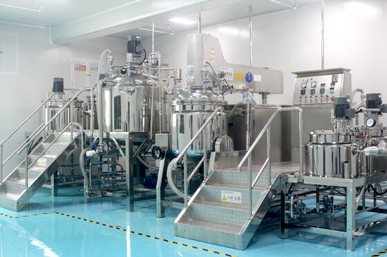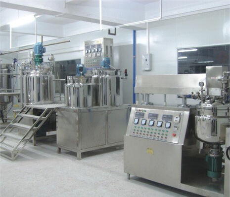 Vacuum Emulsifier is professionally designed according to the cream/paste manufacturing process, introducing advanced technology from Europe/America. The machine composed of two pre-mixing pot, vaccum emulsifying pot, vacuum pump, hydraulic system, discharge system, electric control system and working platform etc. The machine is easy operation, stable performance, perfect homogenizing performance, high work efficiency, easy for cleaning, reasonable structure, occupy small space, highly-automatized.