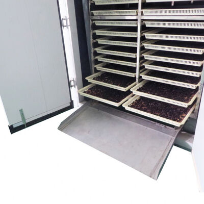 | Model & spec. | Drying quantity per time (kg) | Power of blower fan (kw) | Consumed steam(L/min) | Drying cart (pcs) | Drying pan(pcs) | Machine Size (mm) | Upper and lower temp. difference |
