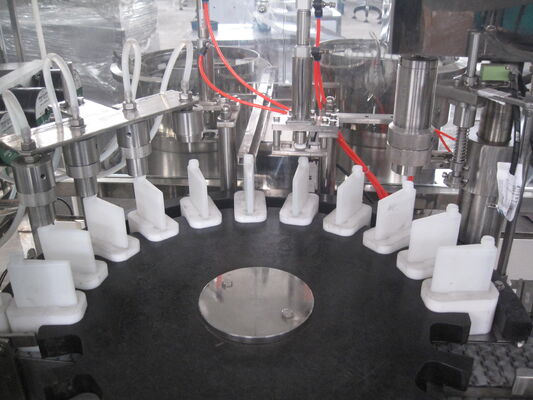 This machine is suitable for filling the liquid in slender cap spray can which is applied in the medicine and cosmetics industries.It performs the whole automatic process including filling, cap placing and cap screwing Special used for pump cap with long tube, with manipulator and guiding device to accurate positioning the pump cap. This machine conforms to the requiremants of GMP.