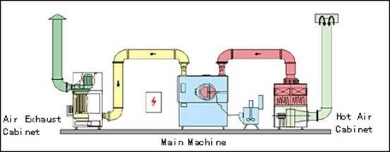 1. With PLC module, all operations such as hot air temperature setting and control, revolutions of the drum adjustment, automatic control and display of negative pressure etc can be in run by pushing the touch key on the computer-controlled panel fully sealed with slight touch film interface.