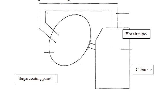 1.Boiler rotates clockwise and sprays syrup and mixed syrup materials on the chip in the boiler in multiple times, enabling the syrup-mixed material to be evenly coated on the chip and sugarcoated tablets to tumble in the boiler. Meanwhile hot air is blown into the boiler to dry the surface moisture on tablets so as to produce certified sugarcoating pills.