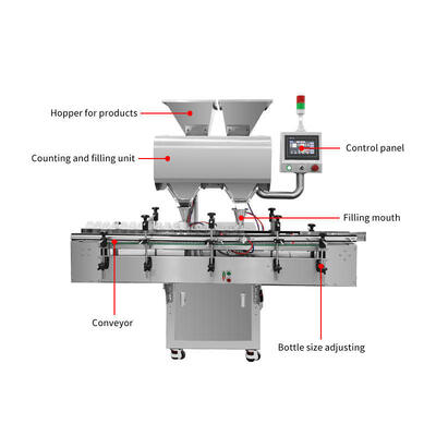 Configurable with complementary equipment including labeling machines, capping machines, and desiccant stuffing machines for complete packaging line integration.